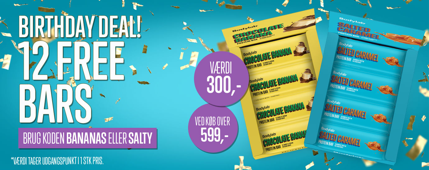 Hooray! Bodylab 22 years! Er du klar til en tilbudsfest så vanvittig, at selv den mest entusiastiske discountsælger ville bede os om at skrue lidt ned? Bodylab fylder 22 år, og vi har tænkt os at give den fuld gas med salgsklichéer som tilbudsjagt, knivskarpe rabatter og køtilbud! Du sparer op til 40 % på nogle af vores allerstørste bestsellers og nyeste… ja, nyheder. Tjek alle vores fødselsdagstilbud ud lige her! |