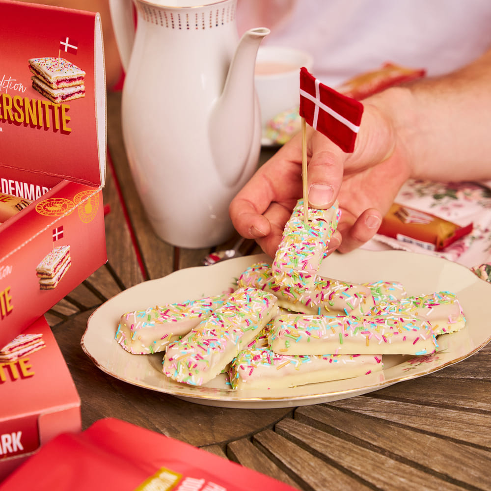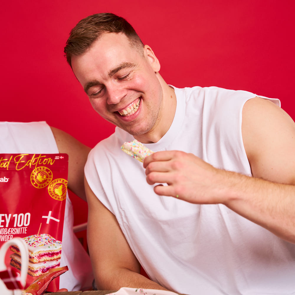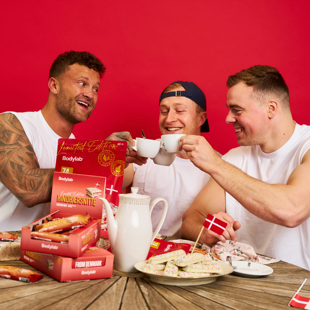 From Denmark with loveADVARSEL: Denne tekst kan fremkalde barndomsminder, kagecravings og akut behov for regnbuekrymmel. Okay, du tager chancen? Fedt! Vi skal ud på en smagsrejse, og vi starter i Danmark med kageklassikeren over dem alle: hindbærsnitten. Du kan glæde dig til en blød proteinbar med hindbærsnittecrumbles, hindbærcreme og regnbuekrymmel på toppen. Og proteinpulver, der smager så meget af hindbærsnitte, at du får lyst til at google ”hvor mange hindbærsnitter må man spise om dagen?” Vi håber, du har lyst til at genopleve smagen af barndom og kagenostalgi. Næste stop på smagsrejsen bliver… offentliggjort senere. Stay tuned ;) |