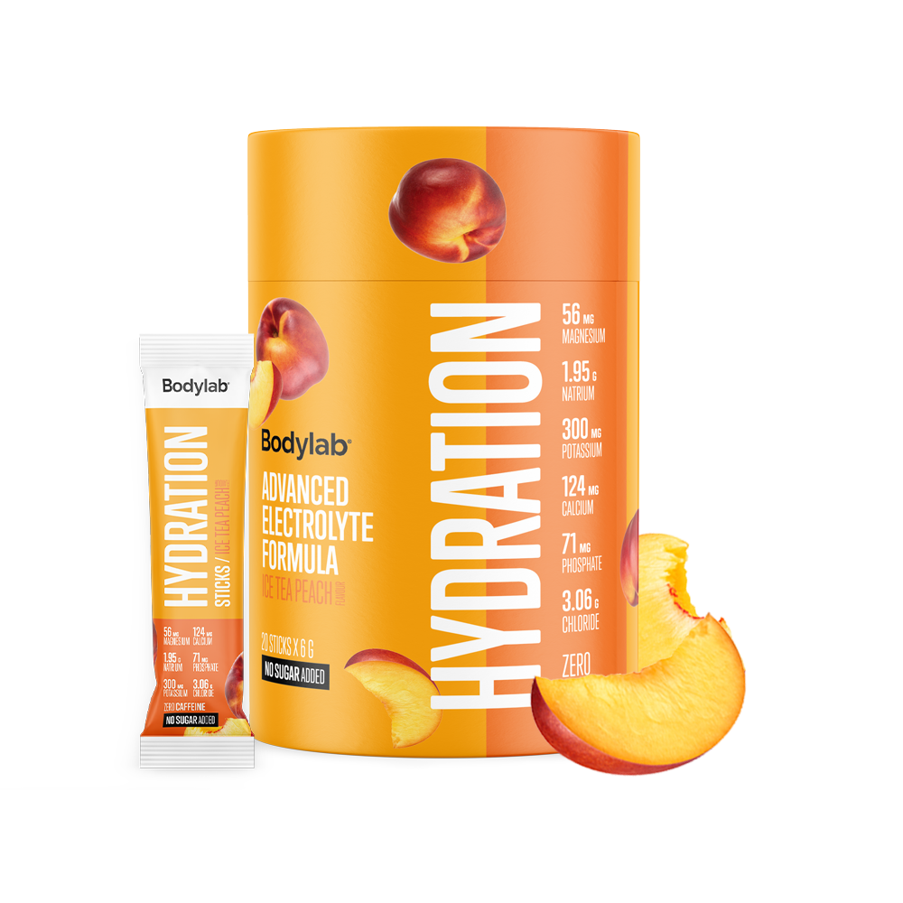 Bodylab Hydration Sticks er skabt til dig, der ved, at hydrering handler om mere end bare at drikke vand. Vi giver dig et komplet og kompromisløst hydreringssystem med seks elektrolytter, som har en lang række dokumenterede effekter. Du får både magnesium, natrium, kalium, calcium, klorid og fosfat – plus C-vitamin, vitamin B6 og koffein*. Alt sammen afstemt ned til mindste detalje for at opretholde væske- og elektrolytbalancen.