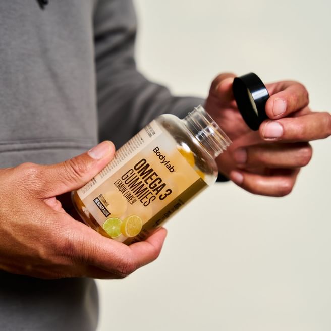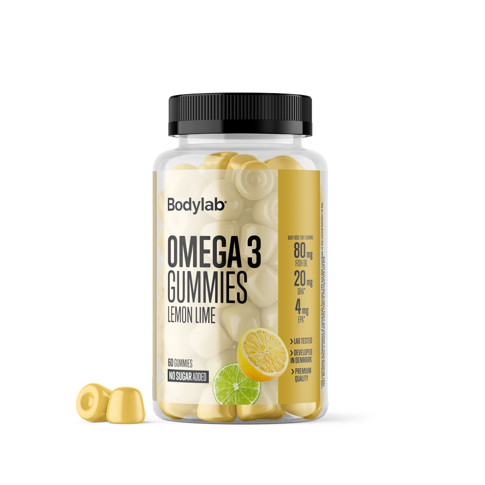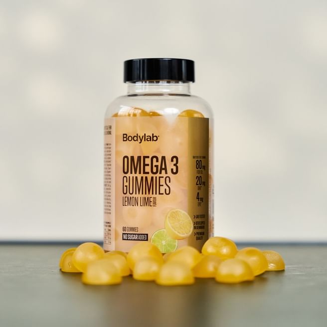 Det har vi gjort noget ved. Bodylab Omega 3 Gummies er så bløde, frugtige og lækre, at de får dig til at glemme alt om kedelige tabletter og ”jeg burde”. Og bedst af alt: De smager ikke af fisk. Vi har i stedet givet dem en frisk, frugtig lemon-lime-smag med en lækker, rund sødme – lidt som at drikke en kold sommerdrik. Bare i vingummiform.